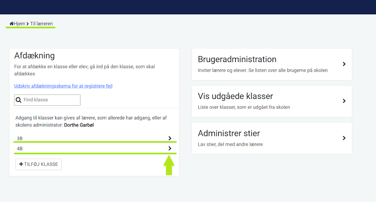 Nederst til venstre ser du de klasser, der er oprettede og tilgængelige for dig (billede 2).