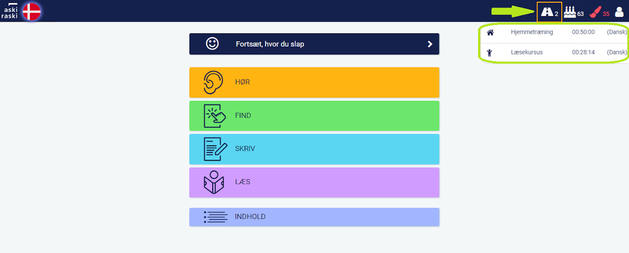 Øverst til højre i elevens bruger vises et sti-symbol i form af en vej. Når eleven trykker på det, vises den eller de stier, eleven har fået tildelt.
